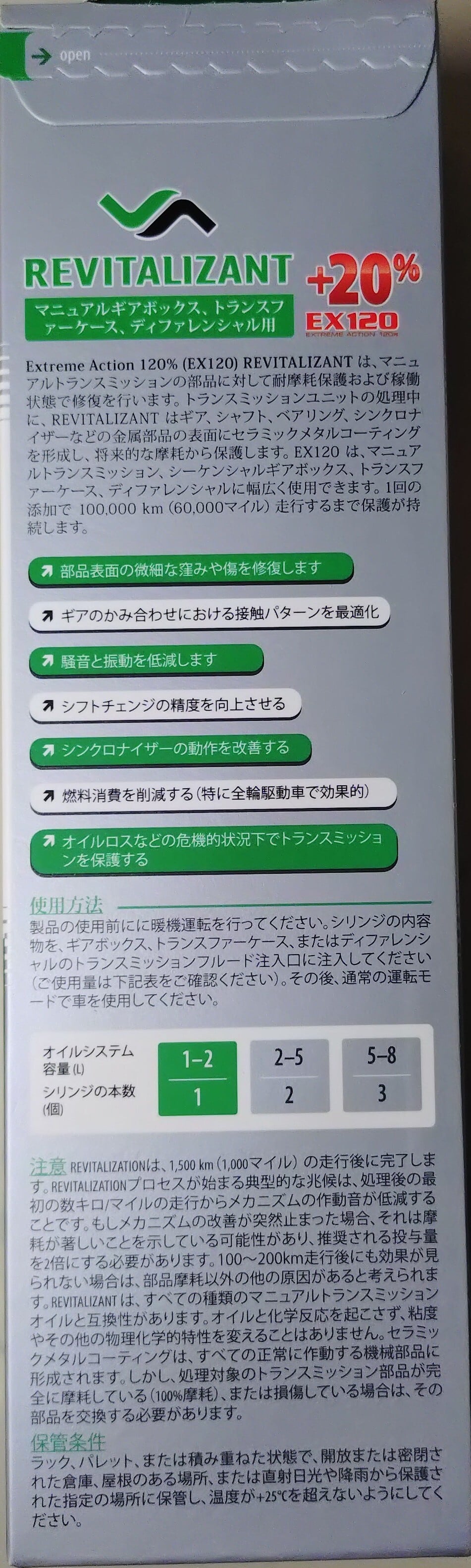レビタリザントは、マニュアル車・セミオートマ車・シーケンシャル及び
